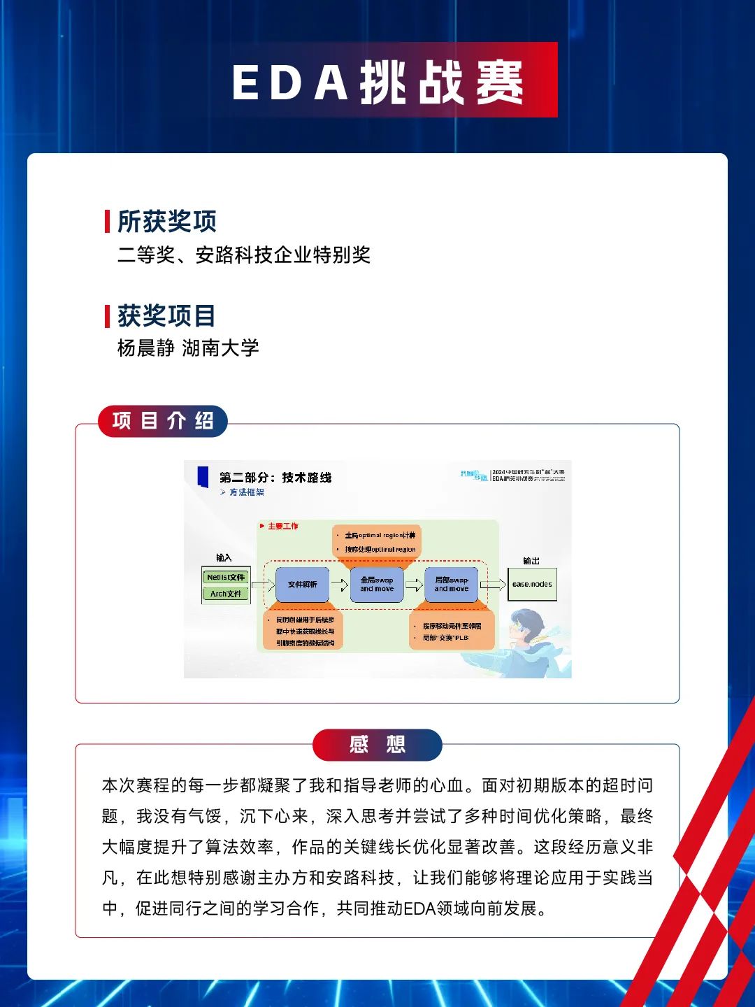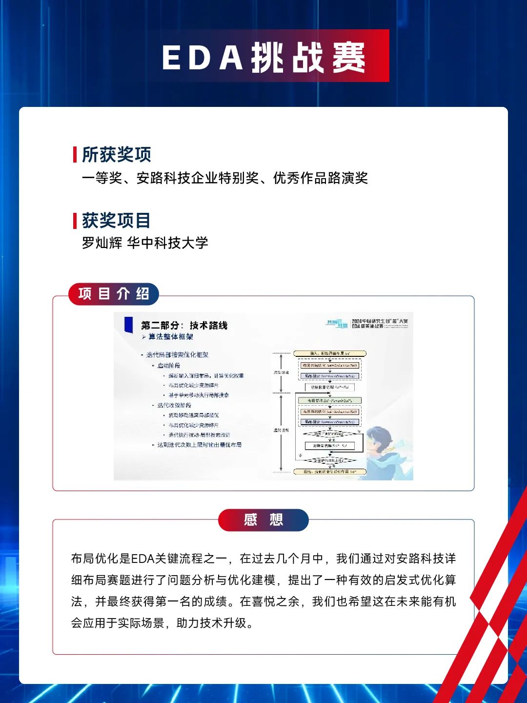 而EDA挑战赛方面,j9九游会官方命题——《FPGA面向布线优化的详细布局》共吸引到了43支队伍报名,共收获1支一等奖,5支二等奖,7支三等奖,包含2支获得 “j9九游会官方科技企业特别奖”,其中更有1支获得了“优秀作品路演”奖。