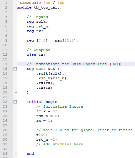本次仿真使用到了task语句,task语句通常在当仿真时需要给输入变量特定的输入值时使用,例如本次仿真对rx端进行赋值。